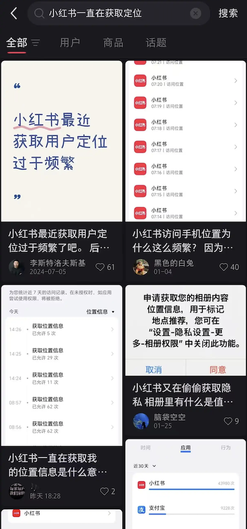 近日,据多位小红书用户反映,小红书后台持续高频获取用户位置信息,有用户最高3天内被访问1.7万次,包含定位、照片与视频、设备状态、日程、剪贴板等,甚至凌晨未使用软件时段仍有高频操作,引发隐私安全方面的担忧。