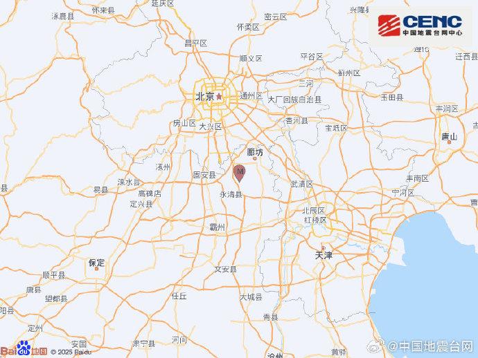 中国地震台网正式测定:03月26日01时25分在河北廊坊市永清县(北纬39.42度,东经116.57度)发生2.9级地震,震源深度15千米。