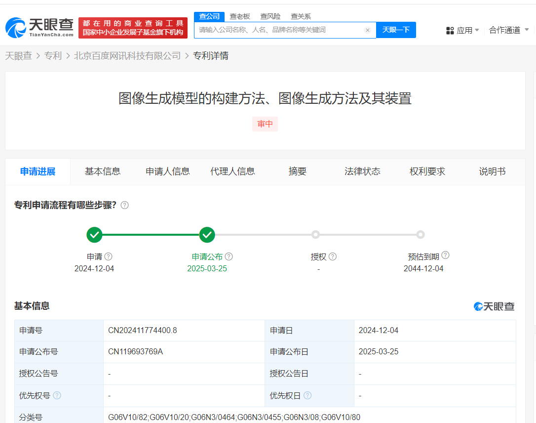 天眼查财产线索信息显示,近日,北京百度网讯科技有限公司申请的“图像生成模型的构建方法、图像生成方法及其装置”专利公布。
