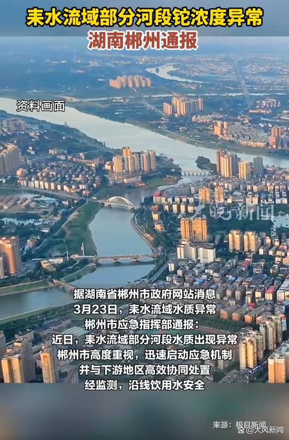 3月23日,郴州市应急指挥部发布情况通报称,近日耒水流域部分河段水质出现异常。我市高度重视,迅速启动应急机制,并与下游地区高效协同处置。经检测,沿线饮用水安全。下一步,我市将持续采取有力措施,确保饮用水安全。
