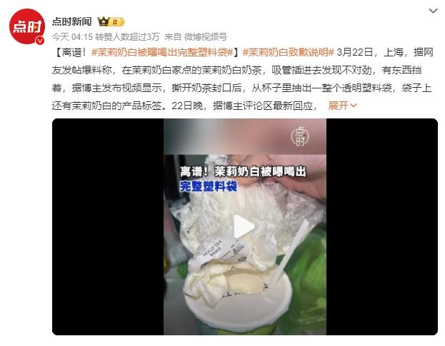 22日晚,据博主评论区最新回应,已收到1000元赔偿,但后续也需要门店给予交代,奶茶里为何会有这么大的塑料袋。对此,点时新闻联系了茉莉奶白400热线进行反馈,工作人员表示会跟相关负责同事进行反馈处理。