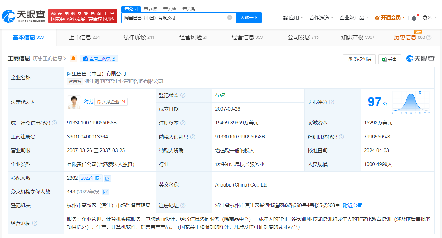 天眼查财产线索信息显示,近日,阿里巴巴(中国)有限公司申请注册多枚“淘宝法象”商标,国际分类为科学仪器、广告销售、教育娱乐、网站服务,当前商标状态为等待实质审查。