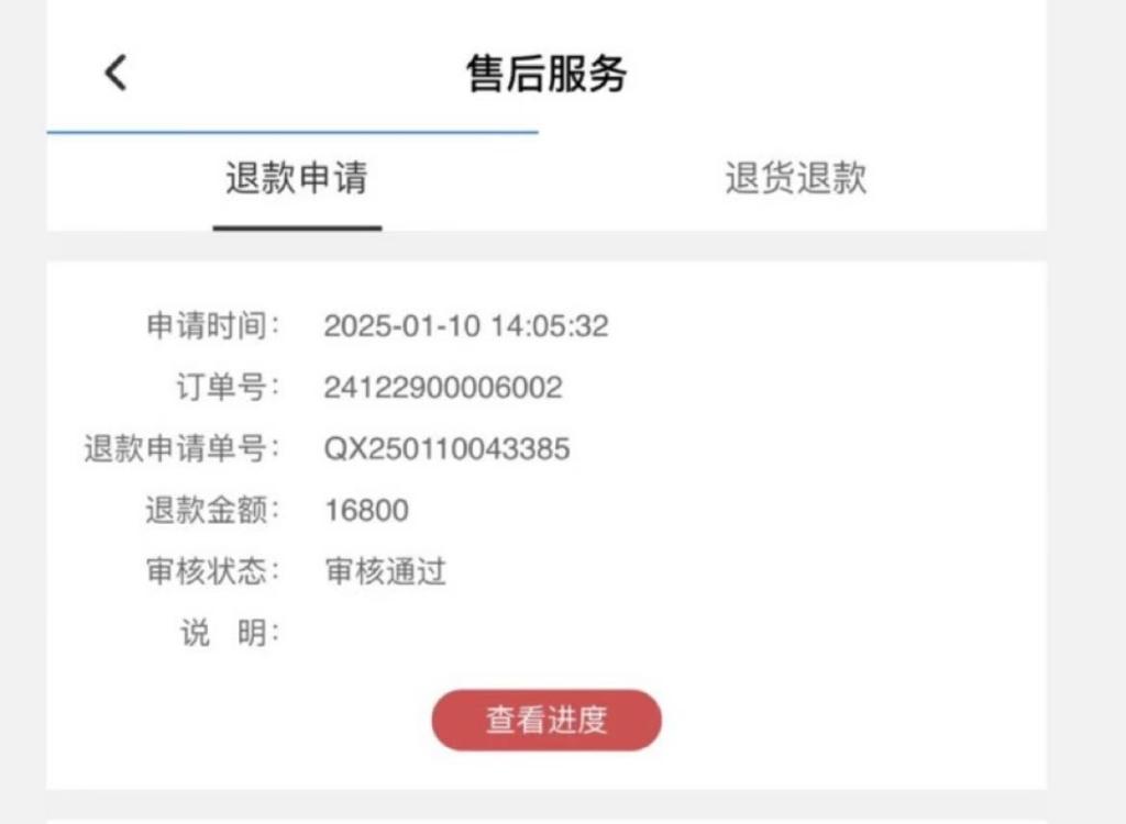 据袁先生回忆,直至2025年1月10日,平台依旧没有发货,“我试着再次跟客服沟通,客服说他们确实没有货,所以我发起了退款。”1月10日,万表APP系统显示平台同意退款,但货款一直迟迟未到账。