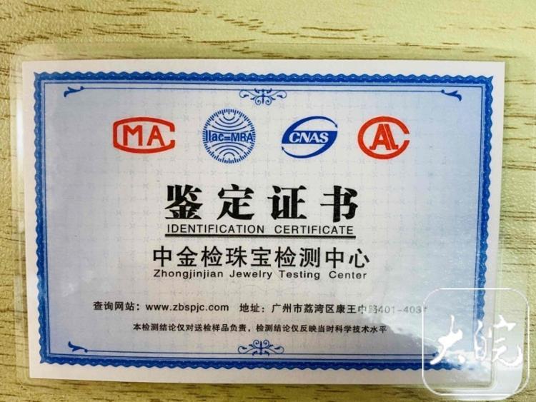 随后,大皖新闻记者联系了广州中金检珠宝贵金属检测有限公司。工作人员称“我们中心只有一个地址,已经不是第一次有人冒用我们名称出示不合规质检证书了,报过警,由于找不到具体冒用我们中心名称的人,无法备案。”