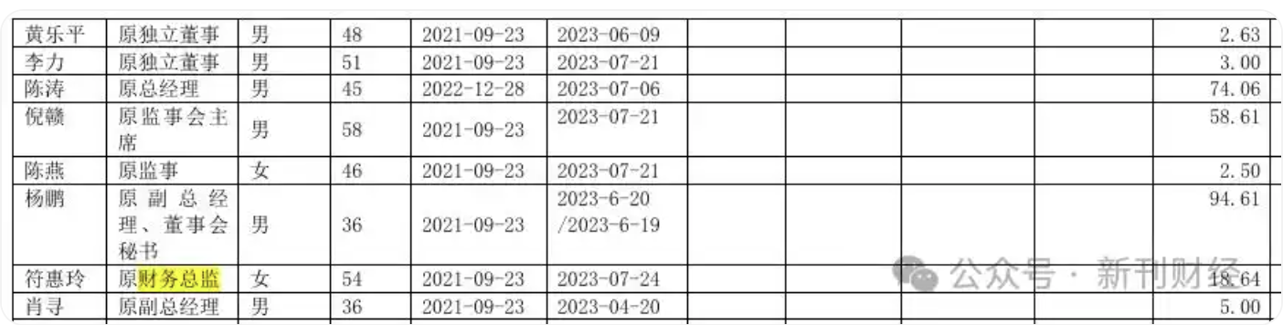 值得注意的是,马贺2023年度所获薪酬仅为31.73万元,但通过增持获得了公司186.28万股的股权。此外,同年公司人事动荡明显,出现了多名关键人物离职的情况。除了原总经理陈涛外,还有两名具有财务背景的高管也相继离职,分别是原财务总监符惠玲和原副总经理肖寻。