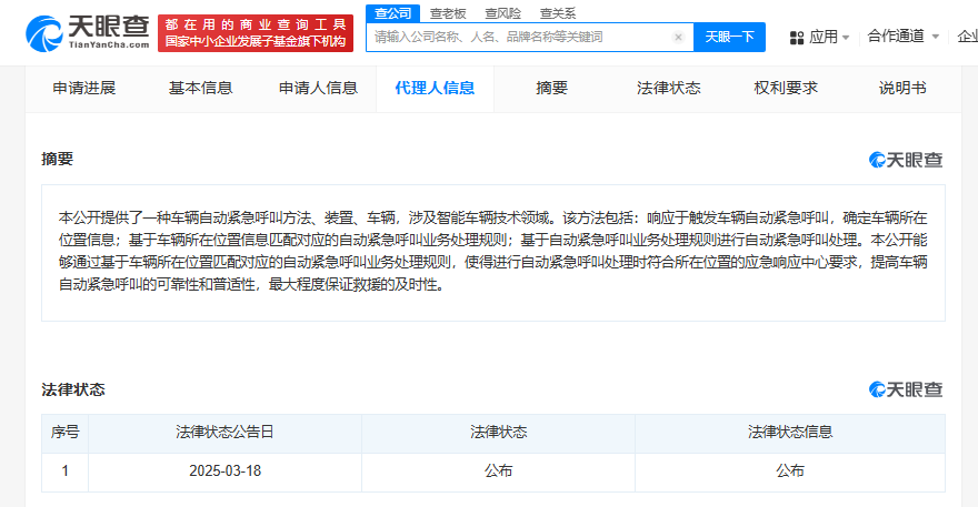 天眼查财产线索信息显示,近日,小米汽车科技有限公司申请的“车辆自动紧急呼叫方法、装置、车辆”专利公布。
