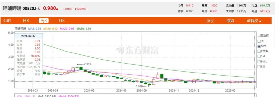 二级市场方面,呷哺呷哺从290多亿港元的总市值下跌至当前的10亿港元附近,盘中股价已跌破1港元,彻底沦为“仙股”。