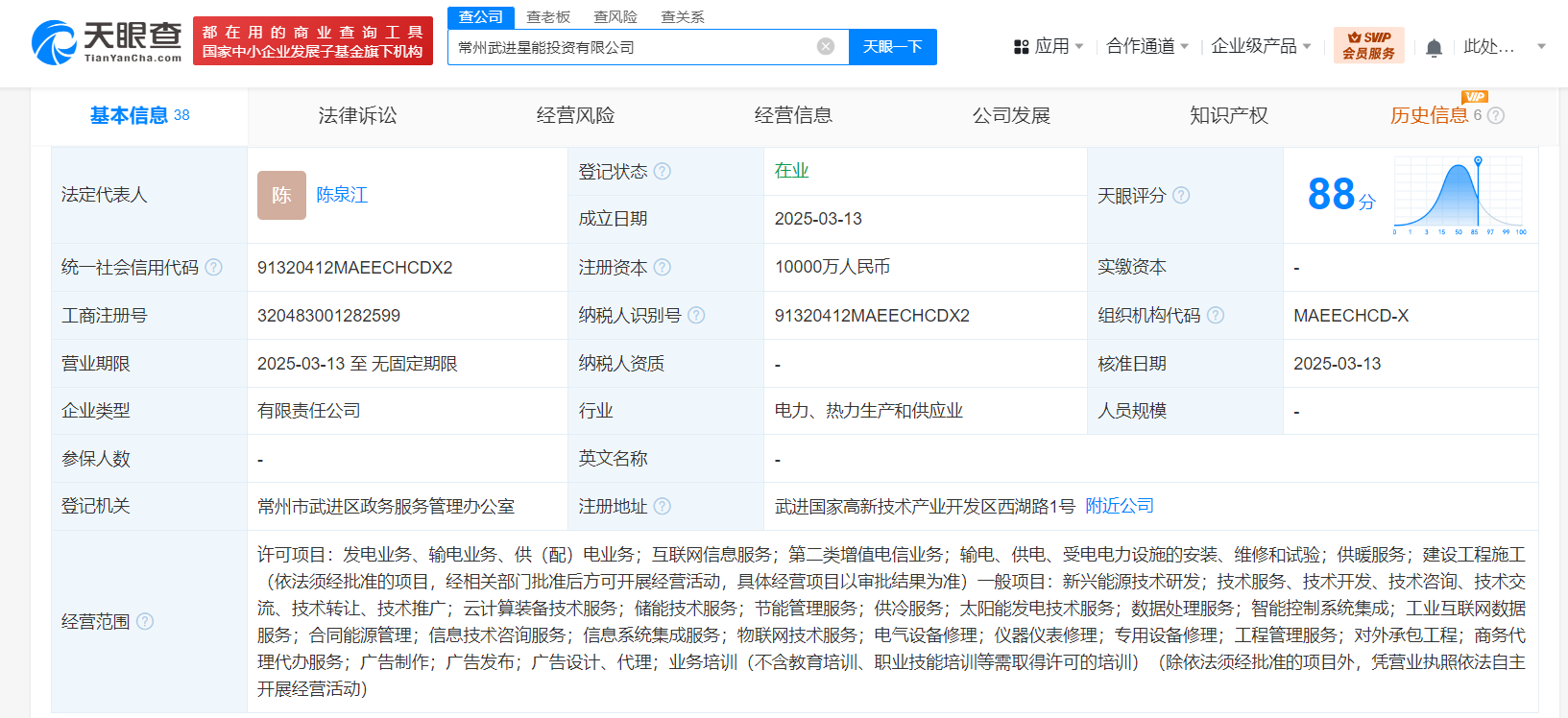 天眼查App显示,近日,常州武进星能投资有限公司成立,法定代表人为陈泉江,注册资本1亿人民币,经营范围含发电业务、输电业务、供(配)电业务,互联网信息服务,第二类增值电信业务等。股东信息显示,该公司由常州武南新能源投资有限公司、星星充电关联公司万帮星星充电科技有限公司、洛凯股份(603829)共同持股。