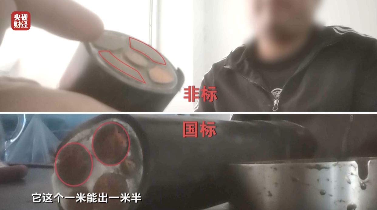 商家见到生意上门,特别提醒记者,国标线会清晰印出厂名、规格等关键信息,可非标产品完全相反。刘老板直言,非标线不敢写清楚,否则生产企业会面临严重后果。