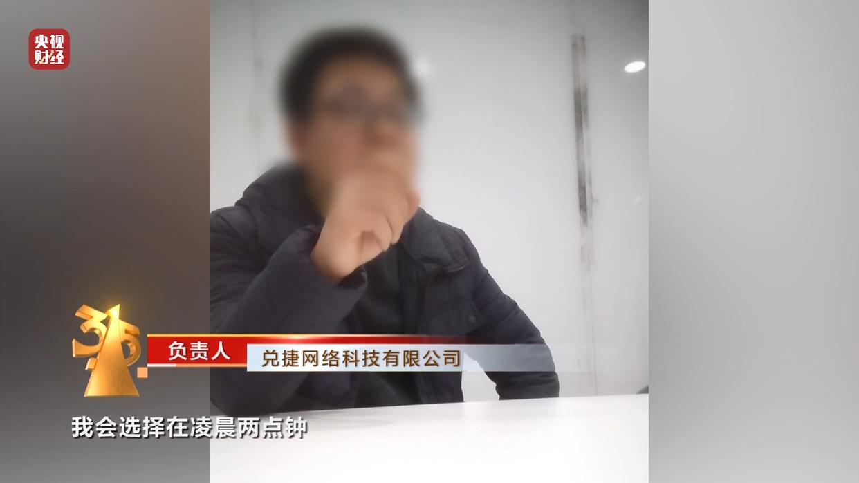 兑捷网络科技有限公司 负责人:一个月之后我们再扣用户19.9元,我会选择在凌晨两点钟去扣这19.9元,当用户早上起来的时候,扣费信息已经被各种信息推送覆盖掉。至于你来不来领就你的事,但扣钱反正每个月我都扣。