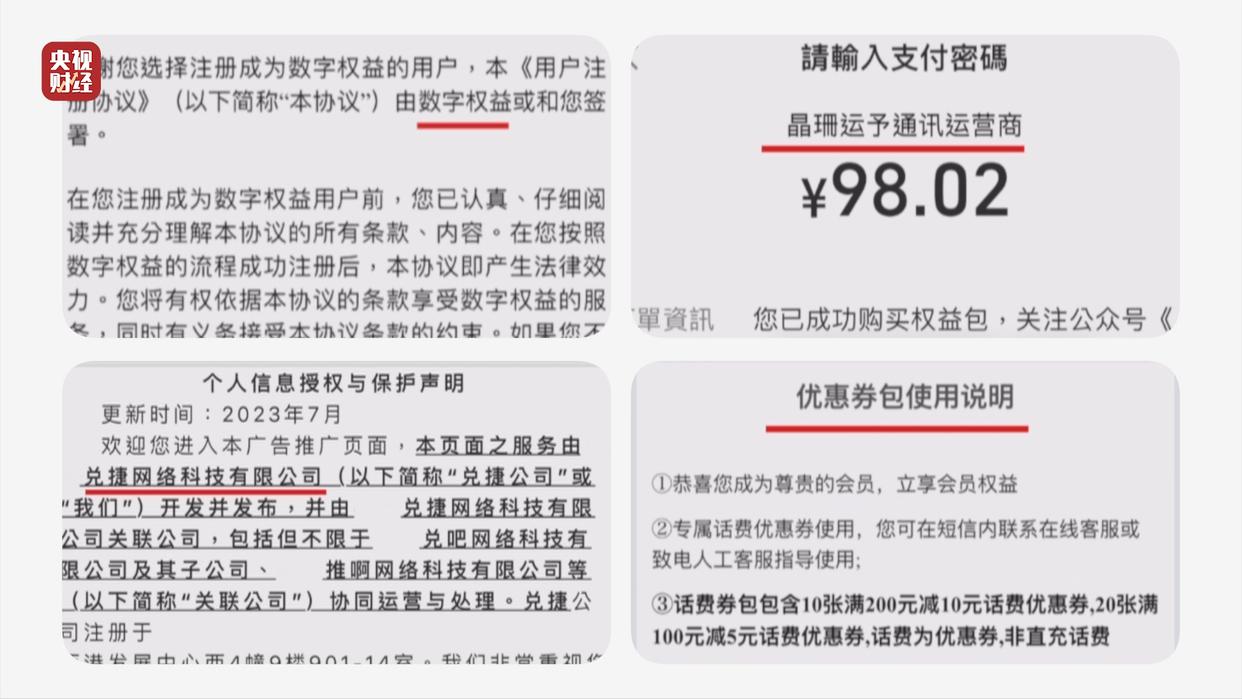 经调查,广告推广由兑捷网络科技有限公司负责,话费券充值由数字权益平台执行,实际收款方是晶珊运予通讯运营商,关系错综复杂。到底是谁设下了消费套路呢?