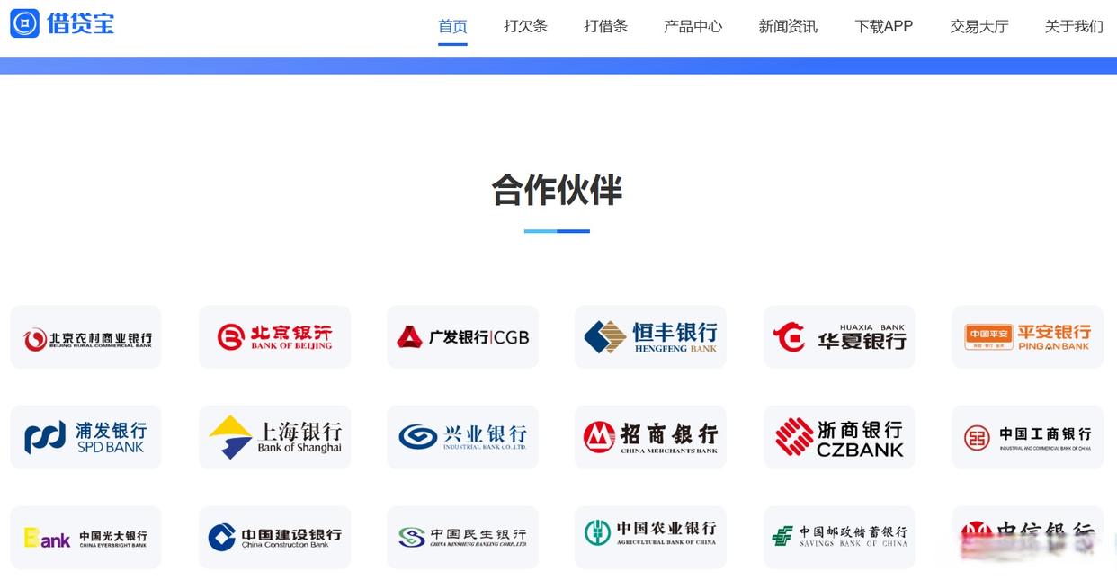 官网显示,借贷宝与绝大部分包括五大行、全国制股份行等都有合作。