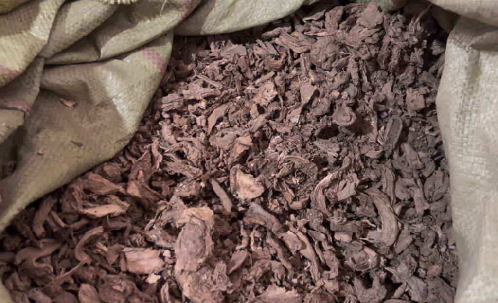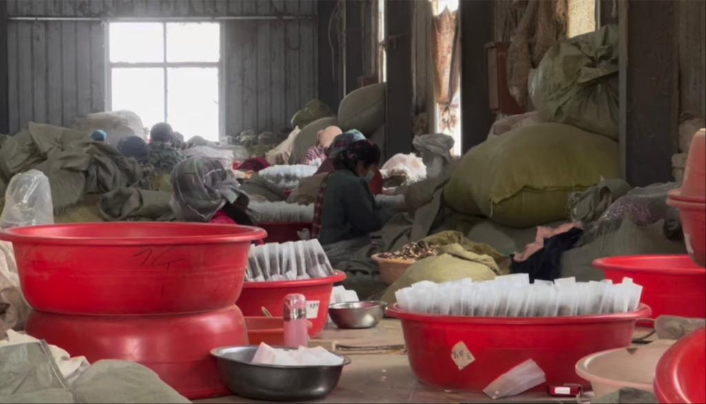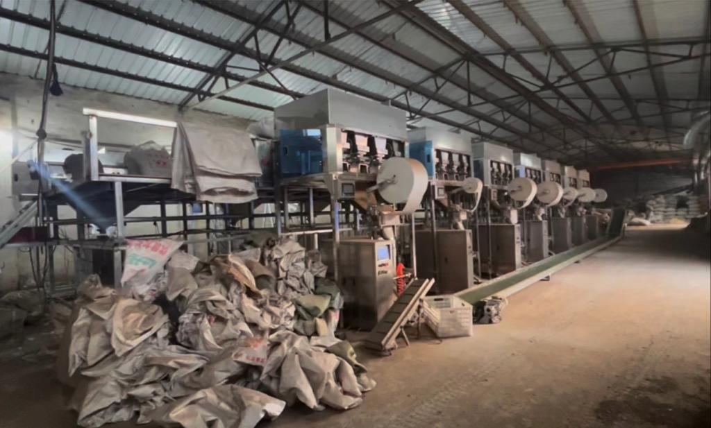 影子调查队走进生产车间看见,墙面、地面都是粉尘,窗台上挂着蜘蛛网,用绿色麻袋装置的药材,有的已经散落在地上,操作台上还有未装袋的药材、无纺布包。