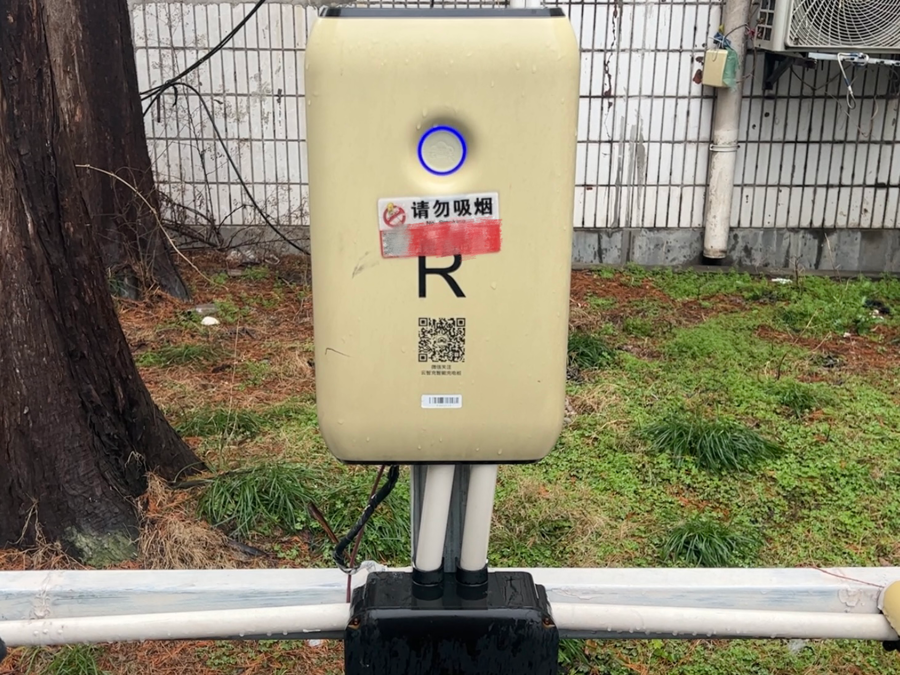 3月5日、6日,记者随机走访了多个仍在使用“云智充”的小区。软件显示,普陀区真光新村第五小区有36个充电插口。实地走访时,充电桩设备分散在小区3处地面位置,每处12个插口。充电桩的中控设备上方张贴有一个二维码,下方有一个条形码。