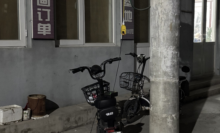 在北京通州区宋庄镇,部分区域的公共充电设施处于空白状态,电动自行车用户只能采取飞线充电。家住通州区宋庄镇的向水(化名)告诉记者,她目前都将电池带到公司充电,“这边大多是自建房,几乎每家都有两轮电动车、老头乐之类的代步工具,我们胡同就至少有三至四辆。大部分都在胡同里充电,插排从窗户拉出来,因为这边有给电动汽车充电的地方,但没有给两轮电动车充电的区域。”