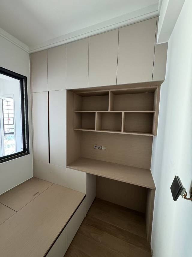 按照陈先生意愿设计的定制家居,柜门与旁边书桌等高,不存在开门受阻的问题受访者供图