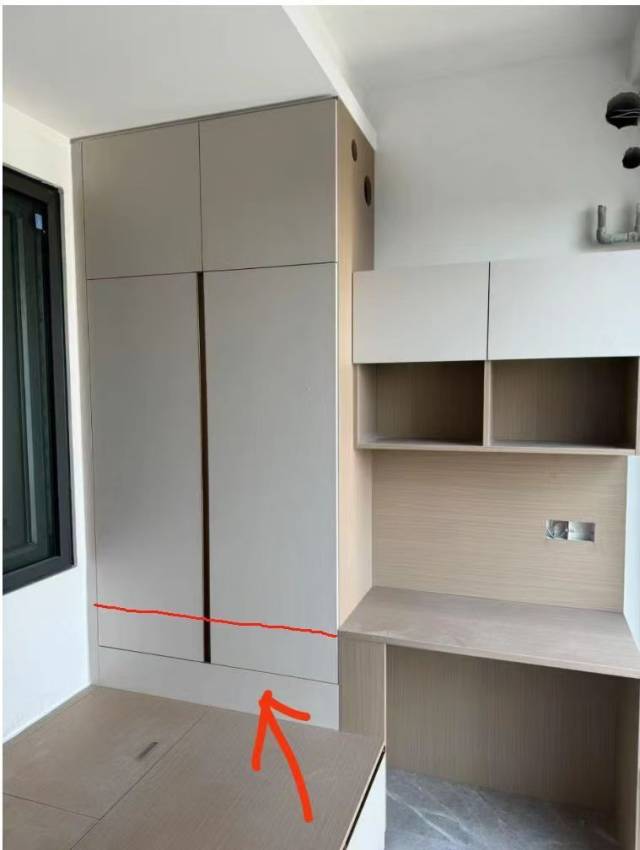 “设计时明明跟设计师沟通了衣柜的门离榻榻米高一点,结果全屋定制的家具安装好后,榻榻米一铺上床垫、枕头柜门就被挡住打不开了。”