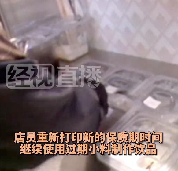 另一家知名茶饮品牌沪上阿姨也被曝光。记者在沪上阿姨汉口城市广场店内看到用来制作杨枝甘露的西柚粒已过期,店员经提醒后只是笑笑,并且重新打印小料保质期,继续用过期材料制作茶饮。