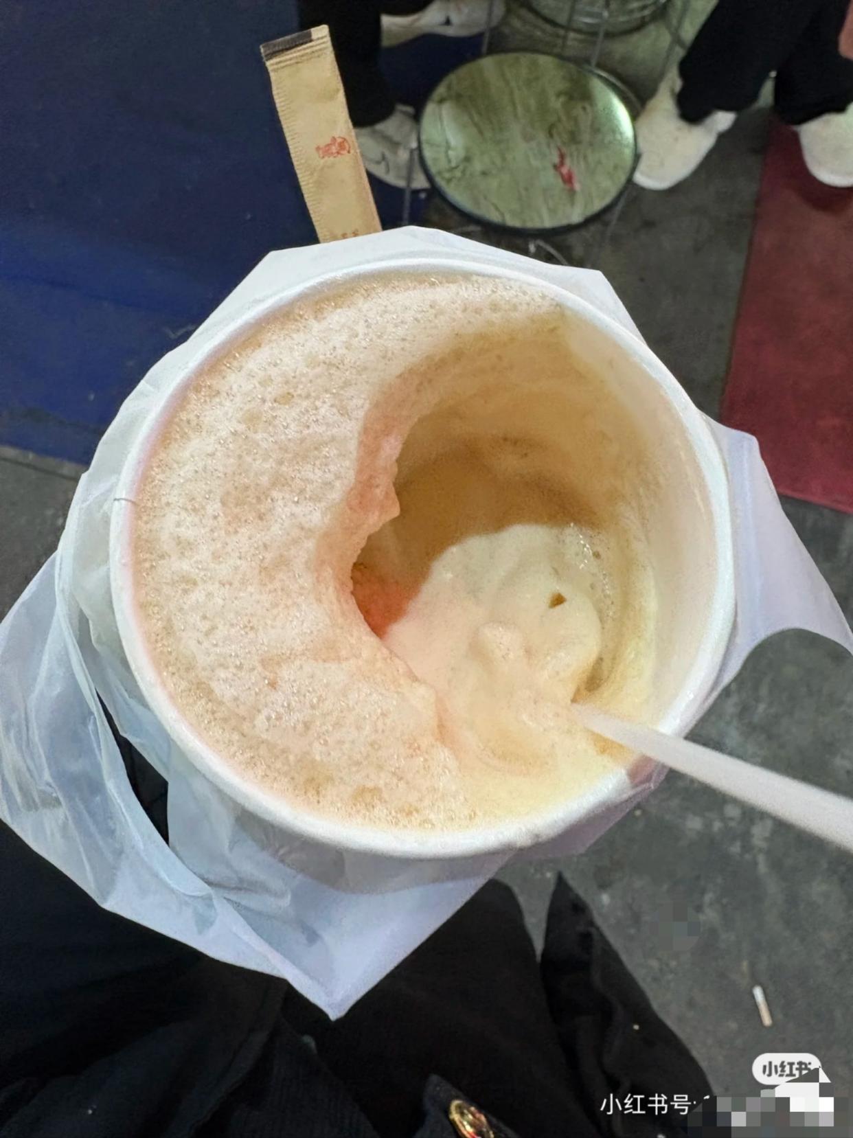 王女士称,喝了无数杯茶颜悦色,每次都是没怎么看直接喝,这次买完喝了一口后突发奇想打开看看,结果发现半杯是泡沫。