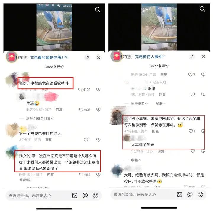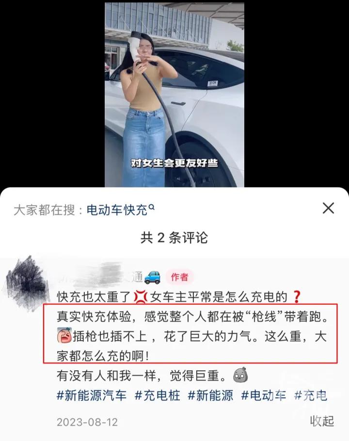 在上述充电枪“打脸”视频下面就有很多网友留言,吐槽日常充电时的感受。