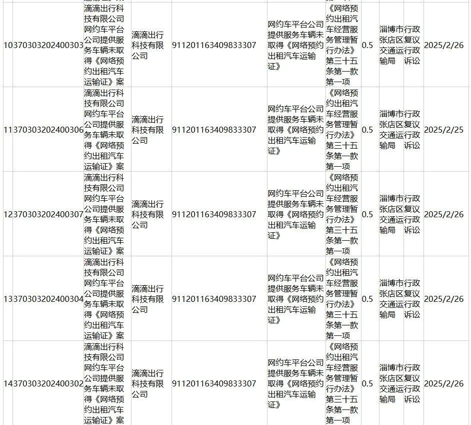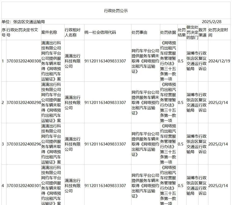 滴滴出行科技有限公司被多次处罚!