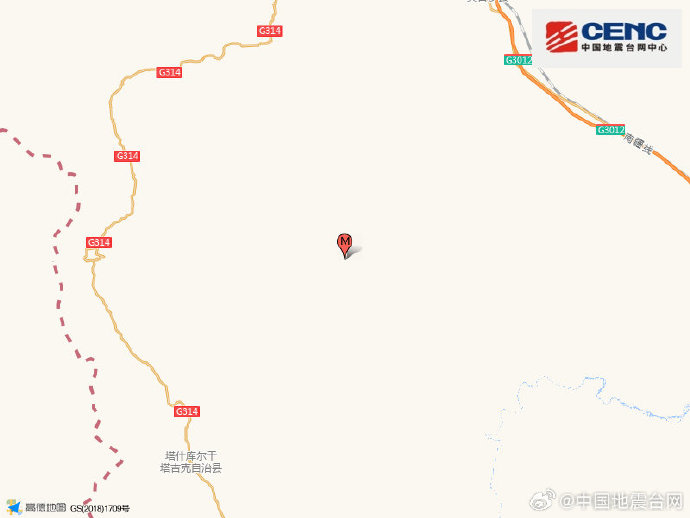 中国地震台网正式测定:3月14日9时26分在新疆克孜勒苏州阿克陶县(北纬38.28度,东经75.72度)发生3.6级地震,震源深度148千米。