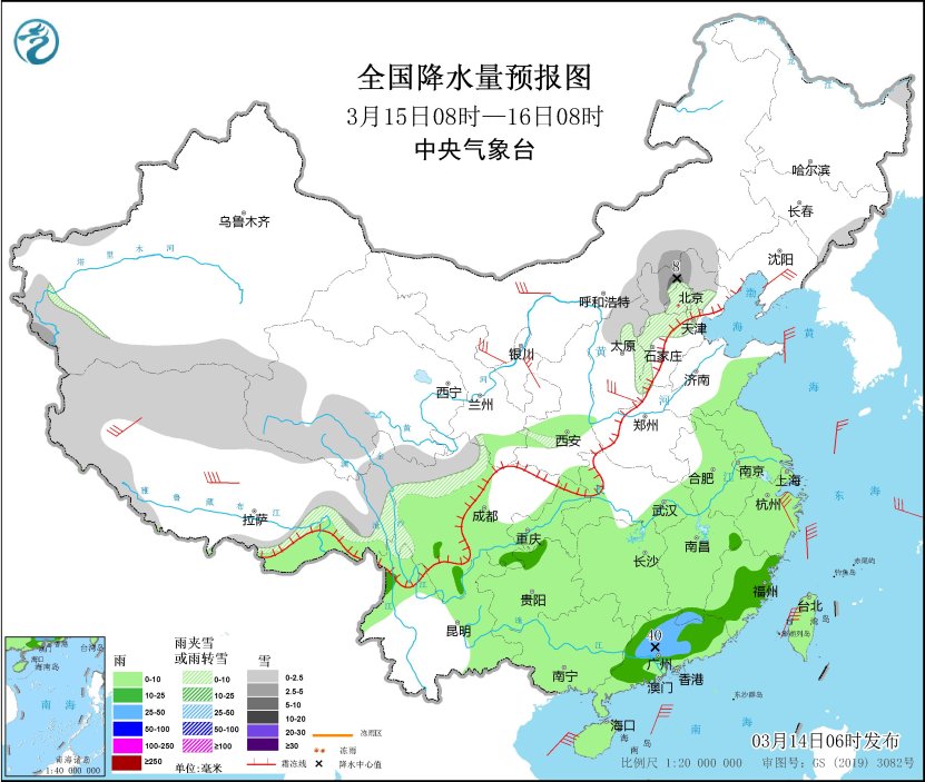 全国降水量预报图(3月14日08时-15日08时)