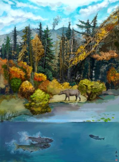 青藏高原伦坡拉盆地渐新世/中新世之交的生态环境重建。吴飞翔 绘