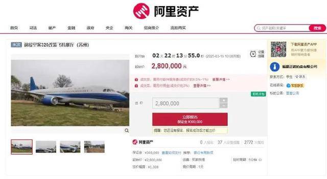 3月12日,现代快报记者了解到,在阿里资产拍卖平台上,位于江苏苏州的一架退役空客320飞机改装的飞机餐厅,将以280万元的底价进行拍卖。这架退役空客320飞机,曾是当地很火的航空乐园,2023年4月试开园,至今未满2年。
