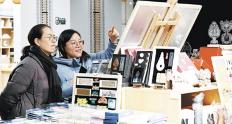 游客在河北博物院文化创意空间选购产品。陈其保/摄