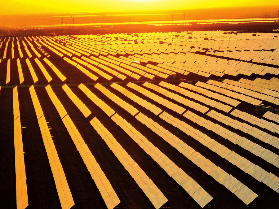 夕阳映照下的新疆哈密市石城子光伏产业园一角(2024年9月8日摄)。胡虎虎摄/本刊