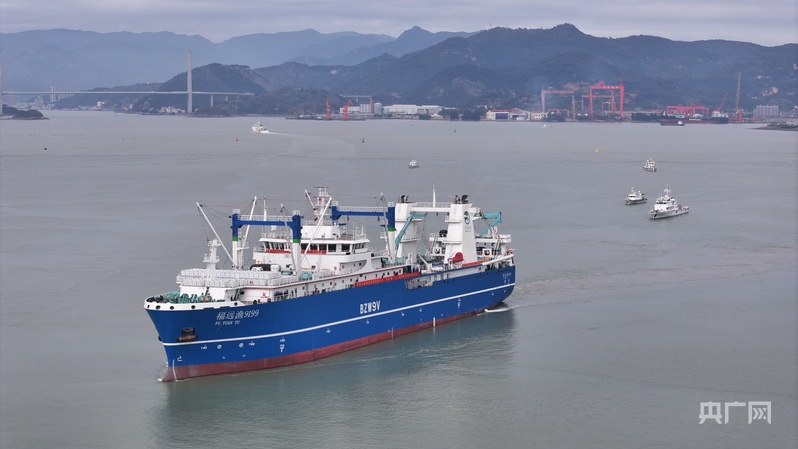 3月10日,“福远渔9199”号启航前往南极开展磷虾捕捞、加工作业(央广网发 刘波 摄)