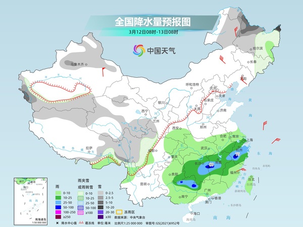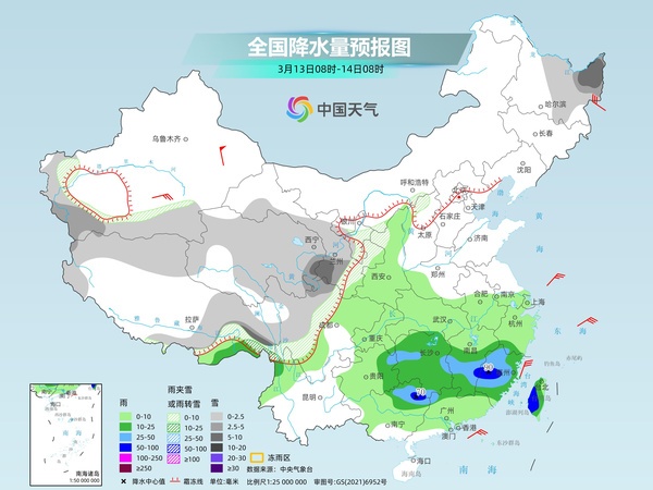 今天(3月11日),受冷暖空气共同影响,南方多地降雨增强,华南部分地区还可能伴有雷暴大风等强对流天气,同时北方降雪天气发展,内蒙古、东北局地或现强降雪,公众需注意防范。随着冷空气东移南下,明起中东部将自北向南陆续迎来降温,13日前后还将有新一股冷空气接棒,两股冷空气接连来袭,多地累计降温幅度可超10℃,经历冷暖转换。