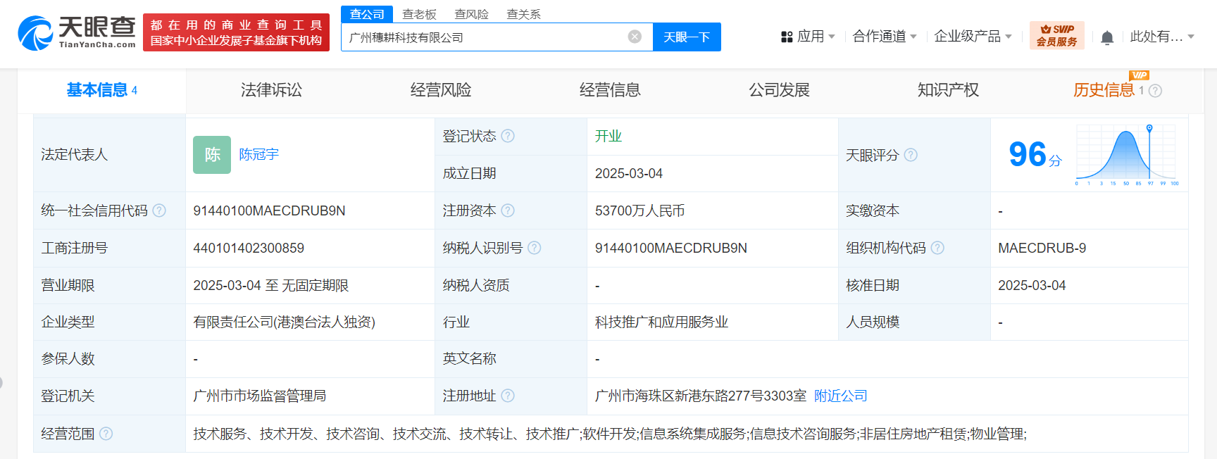 天眼查App显示,近日,广州穗耕科技有限公司成立,法定代表人为陈冠宇,注册资本5.37亿人民币,经营范围为技术服务、技术开发、技术咨询、技术交流、技术转让、技术推广,软件开发,信息系统集成服务,信息技术咨询服务,非居住房地产租赁,物业管理。股东信息显示,该公司由抖音集团(香港)有限公司全资持股。