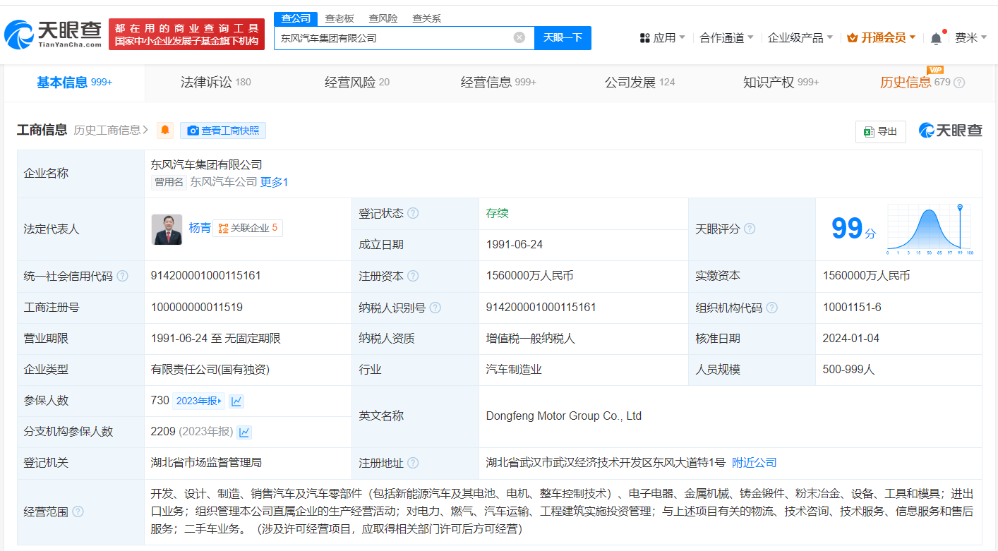 天眼查财产线索信息显示,近日,东风汽车集团有限公司申请注册“东风武当大模型”商标,国际分类为网站服务,当前商标状态为等待实质审查。