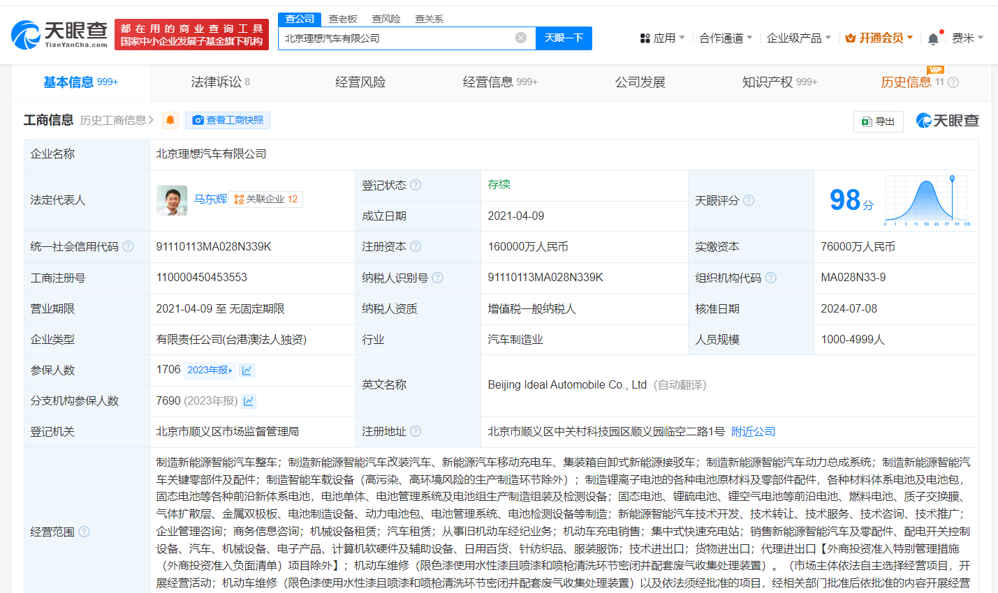 天眼查知识产权信息显示,近日,北京理想汽车有限公司申请注册多枚“前瞻先锋”商标,国际分类为网站服务、运输工具、科学仪器、健身器材,当前商标状态均为等待实质审查。