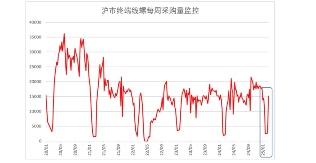 图3 2020年以来沪市终端线螺每周采购量监控数据变化情况
