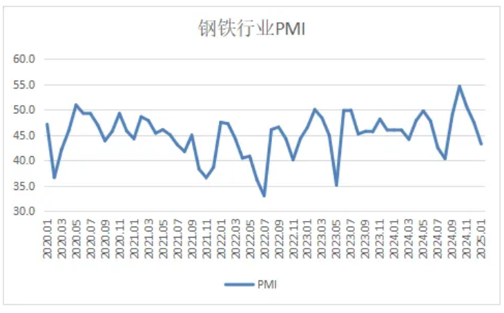 从中物联钢铁物流专业委员会调查、发布的钢铁行业PMI来看,2025年2月份为45.1%,指数虽仍在收缩区间,但环比上升1.8个百分点,显示钢铁行业运行缓中有所趋稳。分项指数变化显示,季节性因素影响仍在持续,钢材市场需求有待继续恢复,钢厂生产趋稳运行,原材料价格继续下行,钢材价格震荡偏弱。预计3月份,钢市需求温和回升,钢厂生产稳中趋增,原材料和钢材价格均低位回升。