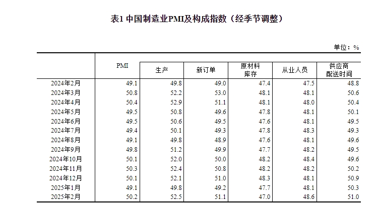 2月份制造业采购经理指数升至扩张区间 非制造业商务活动指数小幅回升