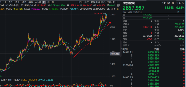 黄金的本轮牛市行情,起始于2022年11月份,当时现货黄金价格在1629美元/盎司附近,随后一路上行至本周一的2956美元/盎司,其间涨幅高达81%。即便最近几个交易日从高位回调后,现货黄金的涨幅也超过75%。