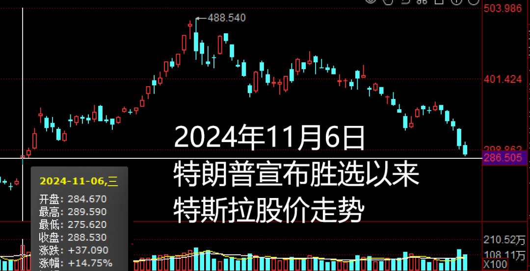 当地时间2024年11月6日凌晨,特朗普宣布在2024年总统选举中获胜后,马斯克对特朗普的成功“押注”,首先在特斯拉股价上火速得到了回馈,开启连续大涨模式。总市值最高上涨至1.4万亿美元,涨幅达73%。进入2025年,特斯拉股价开始大幅回调。截至2025年2月26日,今年年内累计跌幅达25%,市值跌破1万亿美元。