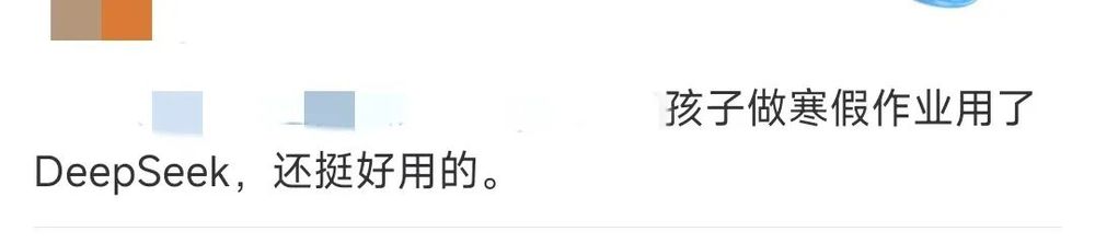 有人表示,“已经用DeepSeek搞定了两篇作文”“DeepSeek寒假作业好帮手”“与时俱进,会使用工具是一种进步”。
