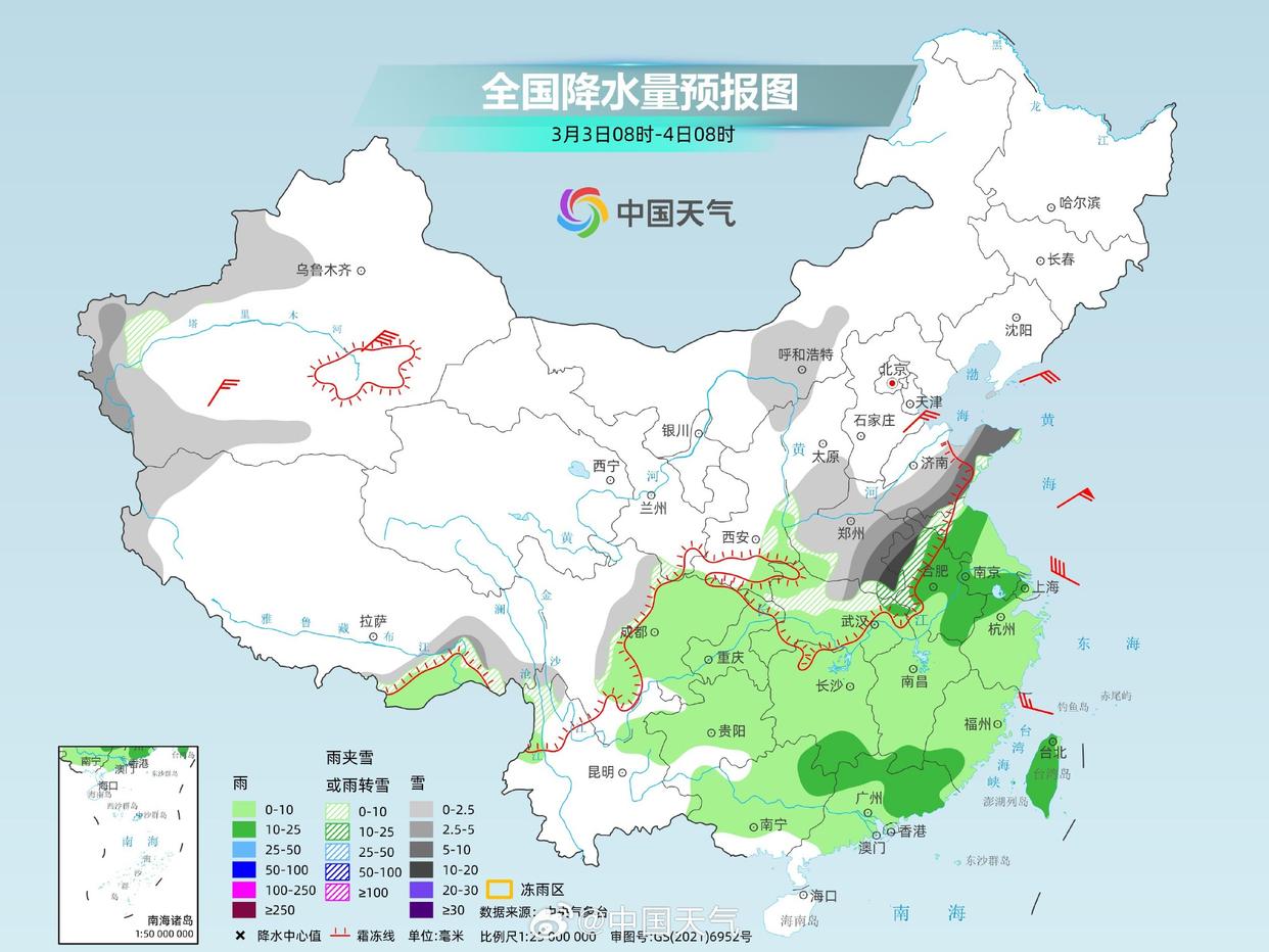 ·4日凌晨,最低气温0℃达到江汉至淮河一线。