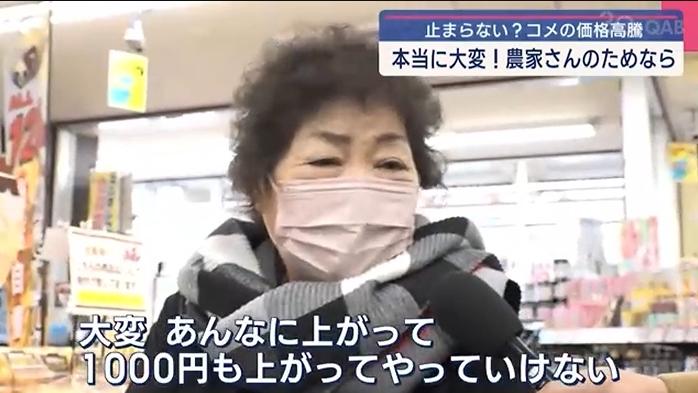一名日本冲绳县民众表示米价上涨“让人实在吃不消”。图片来源:日本“琉球朝日放送”报道截图