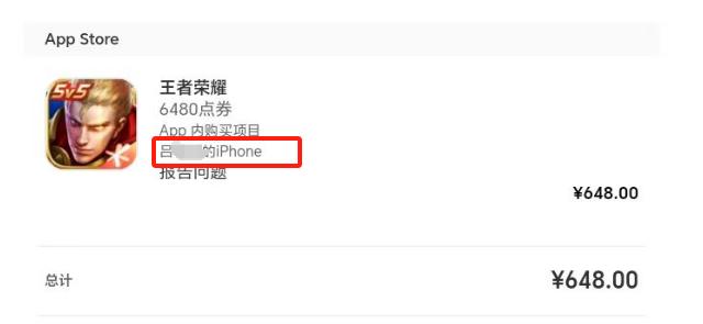 记者仔细查看这四笔交易,发生的时间都是在凌晨,使用了不同名称的iPhone设备,购买的居然都是王者荣耀游戏点券。