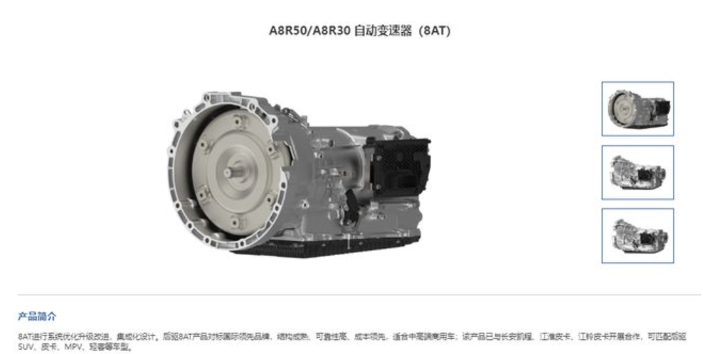 东安动力的A8R50和A8R30变速器,则主要应用于皮卡、轻型商用车和越野SUV上,如瑞风L6MAX、江淮T8PRO、悍途,北汽制造卡路里,以及全新212品牌的T01车型等。