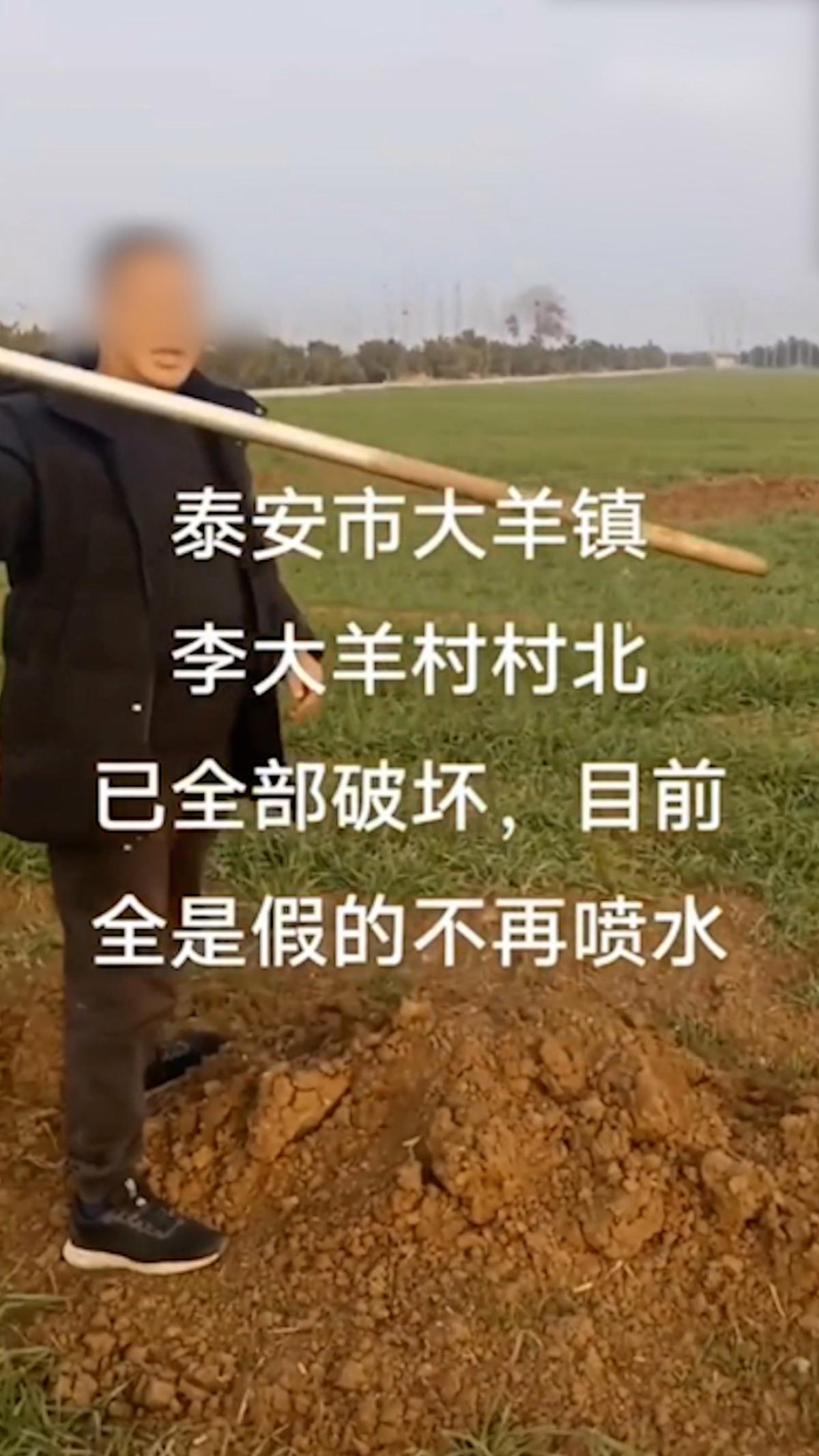 近日,有网友发视频实名举报,山东泰安市东平县大羊镇一处高标准农田里的喷淋设施被人破坏,不能工作。其称,破坏者为了应付验收检查,又将这些损坏的设施插回地里。