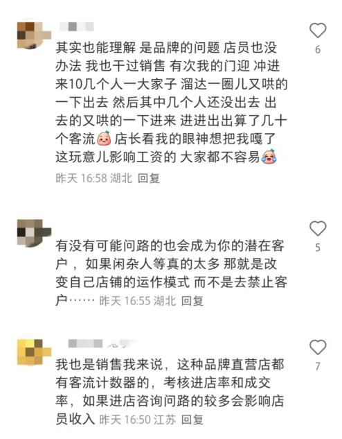 另据一些有过门店工作经历的网友分享,“客流器”还用来考核门店的转换率,如果进店咨询或问路的人较多而成交率不高,也就意味着门店的实际转换率不高,最终会影响门店整体的绩效和店员工资。