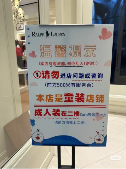 拉夫劳伦长沙IFS国金中心童装店门口立有“谢绝乱入”提示牌。图/社交平台截图