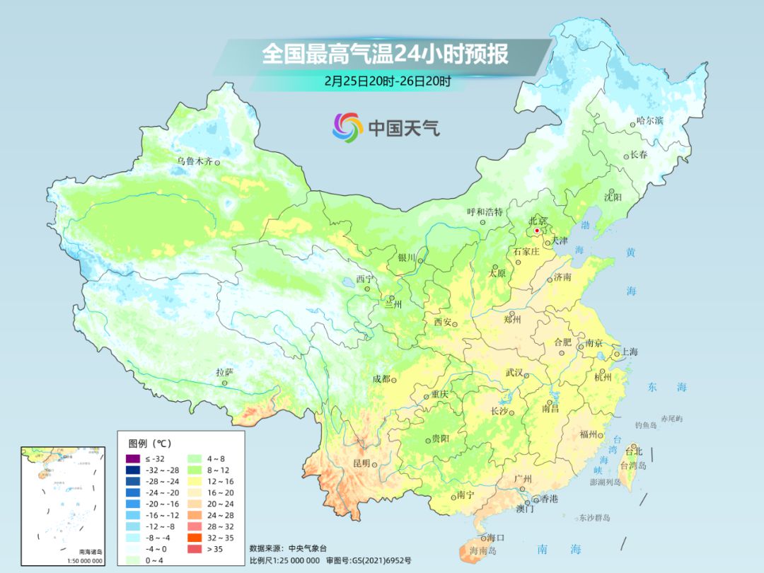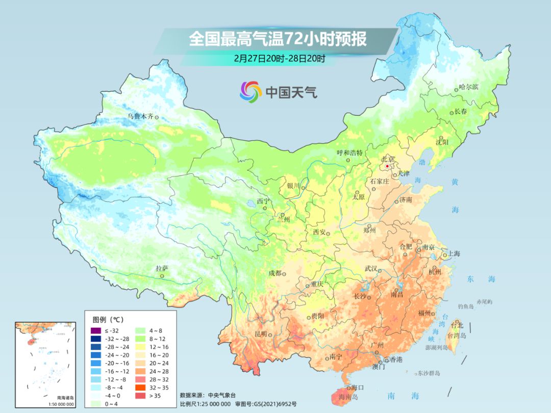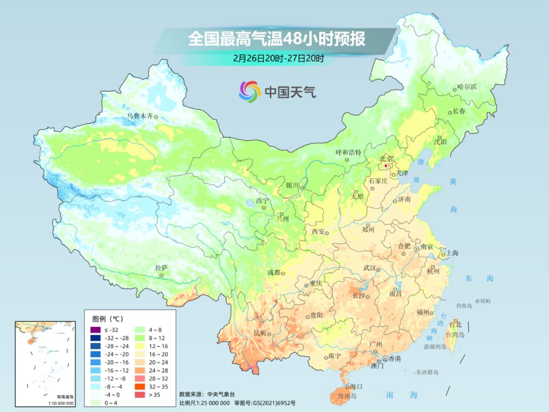 明天,南北方各地升温的步伐将调整一致,集体回暖。之后,我国气温将开始大面积屡创新高,北方主要集中在27日至28日,南方创新高战线会拉得更长一些,将延续到3月1日至2日。过程中,贵州到江南一带累计升温幅度可达15至20℃,局地甚至超20℃。